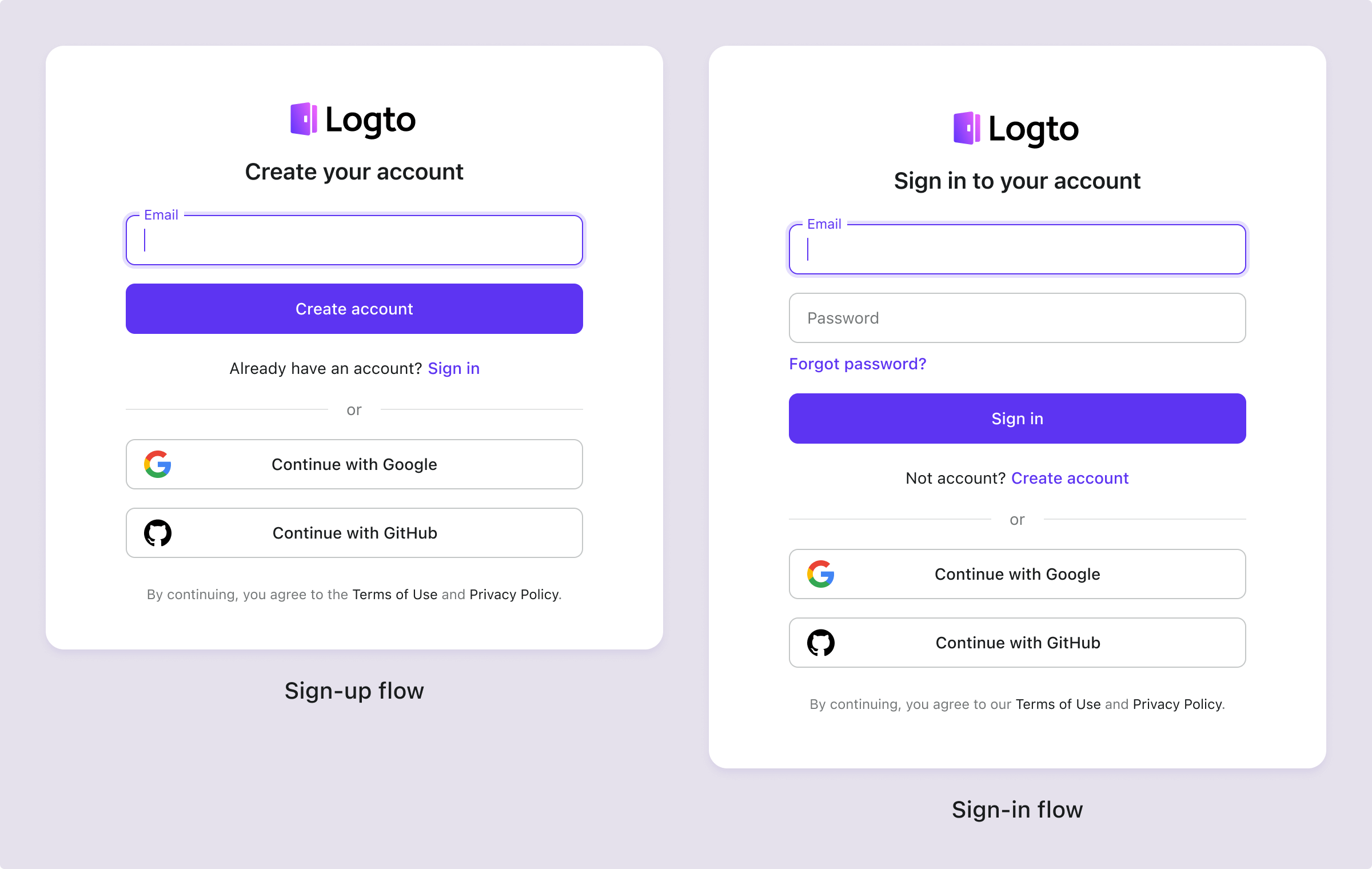 Logto provides multiple pre-build flows to handle the user experience for agreeing to terms based on your different compliance requirements: